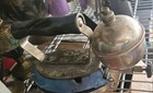 The Vintage Coleman Instant-Lite model #4A Blue Enamel Gas Steam Iron from the 1930s is a collectible small appliance that operates on gas and was for garment ironing. Made of metal with a comfortable handle, this USA-made iron is a unique piece with vintage charm. The blue enamel color adds a touch of retro aesthetics to any kitchen or home decor. This cordless unit weighs just under 6lb and is a great addition for vintage iron enthusiasts looking for a piece of history from a trusted brand like Coleman.