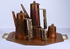 Vintage Mexico Copper 5 Pc Coffee Tea Set Tray Creamer Sugar