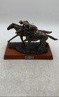 Cast Bronze Hong Kong Club Collectible Two Jockey Racing On Horseback Figurine