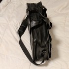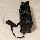 Leather (probably synthetic) computer bag. It is used, but nothing is broken. All zippers and straps are fully functional. Approximately 17" x 12" x 5".