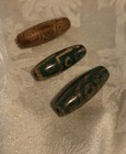 This lot includes 3 unique Tibetan Dzi beads made of Jade Green/Brown agate, and one is almost wood-like. Each bead is an ancient 9 eye bead. There are claims that these natural beads have very powerful healing properties.