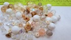 60+pc. This assortment of Czech glass beads is perfect for jewelry making and crafting projects. The beads come in various shapes, sizes ranging from 3-17mm, and are in the colors of white and clear. Made of high-quality glass, these loose beads offer a versatile and stylish addition to any project, allowing for endless creative options.