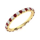 Full Eternity 2MM Round White Topaz & Ruby 925 Sterling Silver Gold Plated Ring