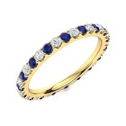 Full Eternity 2MM Round White Topaz & Blue Tanzanite 925 Silver Gold Plated Ring