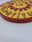 Vintage teal flower-shaped bead organizer with original contents. Open box. Contents appear unused and clean. Includes pink faux pearl beads, clear translucent beads, silver-tone flat sequins, and small white beads as shown. Organizer measures approximately 4.5 inches across. No cracks. Light storage wear consistent with age. Please see all photos for exact condition and contents. Ready for jewelry making, crafts, or display.