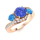925 Sterling Silver Rose Plated 5MM Round Swiss Blue Topaz Three Stone Ring