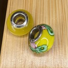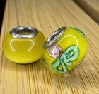 925 Silver Glass Murano Art Bubble Beads Lot 2 Yellow Flower European Style