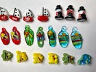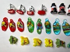 Lot of 21 Handblown Summer Beach themed handblown glass beads. 4 sailboats, 3 lighthouses, 3 red flip-flops, 2 green flip-flops, 3 blue flip- flops, 2 green fish, 3 yellow fish, 1 blue seahorse. Beads measure to around 17mm.