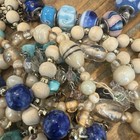 This bundle includes 9 pieces of handmade multicolored glass beads and some stone beads for creating necklaces. The pieces are sold as parts only, allowing for flexibility in crafting personalized jewelry. The vibrant colors and unique handcrafted quality make these beads a versatile and creative addition to any jewelry making project.