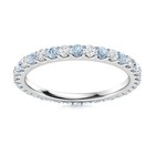 Full Eternity 2MM Round Aquamarine & White Topaz 925 Sterling Silver Women Ring