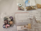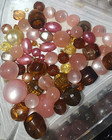 This is a great lot that includes beads, buttons, faux gems and pearlized stones. The last section in the container has brown, pink pearlized beads of several shades and sizes. Finally there is a bag full of incredible stones that have all sorts of amazing pearlized colors.