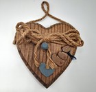 Small Handmade Wooden Heart Teddy Bear Wall Hanging Country Cottagecore