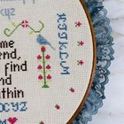 Vtg 12” Cross Stitch Hoop Framed Alphabet Sampler Round Lace Country Cottage
