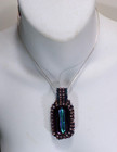 Artisan Dichroic Glass Necklace 2.5" Wrapped Pendant 18" Chain XL302