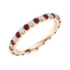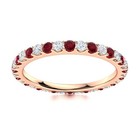 Full Eternity 2MM Round White Topaz & Ruby 925 Sterling Silver Rose Plated Ring