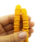 These shiny bright orange Dogon donut beads are new and are made in Venice Italy and worn by the Dogon tribe in Mali Africa. Each bead is hand made wound glass, and slightly different in size and shape, very organic looking.