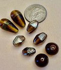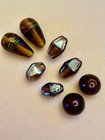 8 Amber Glass Beads, Assorted Shapes, 2, Cones Hand Painted/Embellished. Assorted MM.
