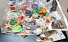 A bag of broken pins, missing stones, beads, earrings and a lot of tender loving care. Bag is 1lb, 5 oz. This is first bag but more will follow, also have craft items ready to be boxed up