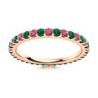 Full Eternity Round Emerald & Pink Topaz 925 Sterling Silver Rose Plated Ring