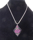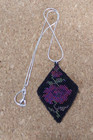 BEADED MINI FLOWER 2" TAPESTRY PENDANT SILVER PLATE CHAIN 18" XL307