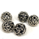 5 Beads Fancy Old Loose Beads Black Silver Overlay Wire Filigree Vintage 13 mm