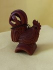 Rise & Shine Carved Boxwood Rooster Ojime/Netsuke Bead | 31x20x16mm | Brown