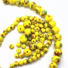 Vintage UV 1950's Yellow Round Japanese Flower Glass Beads (6mm/10mm) (YJG3)