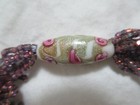 The round shape and stunning color make it a standout piece for any jewelry collection. The beads are crafted from high-quality glass and are perfect for jewelry making or adding to a collection. This unique necklace is also handmade, adding to its charm and character.