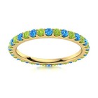 Full Eternity Round Peridot & Swiss Blue Topaz 925 Silver Gold Plated Women Ring