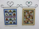 COMPLETED Small Bell Pulls Cross Stitch Wall Hangings CAT FACES & HOUSES Set
