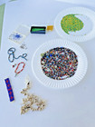My great aunt lived in FL, and the small marine shells were being strung, even still has the needle on the string. So could be from Florida. The colorful beads on the paper plate were in the oldest looking small jar.