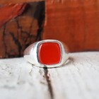 Featuring a striking square carnelian gemstone, this ring showcases rich warm tones and a smooth polished finish. Stone: Natural Carnelian. Material: Genuine 925 Sterling Silver. Stone Shape: Square.