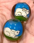 2 very special Chinese reverse painted glass beads with sweet bunnies, appx 3/4” diameter each.