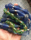 ***this listing is for ONE strand of beads*** SMALL sized Ancient Afghani Roman Glass upcycled beads in mixed blue and green colors. Handmade in Afghanistan, these coin shaped (center drilled) beads are made from very reclaimed old ancient roman glass that were once vessels like perfume bottles, water jugs, plates and cups. Remnants of these vessels have been salvaged and hand-carved into beads. These various vessels of glass were traded eastward along the silk road trade route from Rome to the east and many fragments are found in Afghanistan and the middle east and repurposed into glass beads. Approximate Number of Beads: 28-30 Bead Size: 7-15mm round Hole Size: 1mm Strand Length: 15"