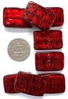 Venetian Murano Glass Bead Beads 8 Red & Gold Foil Spotted Rectangles 30mm (#33)