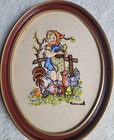 Vintage Hummel Farm Girl and Boy Stitchery Finished Kit Set 9"x12" Framed 1976