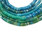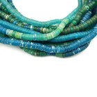 ***you will receive ONE of the actual strands of beads in photos*** Beautiful rare group of mixed blue and green Kakamba beads! Hard to find blue and green beads are mixed and you will receive one of the strands of beads in pictures. In great condition and estimated to be 50-70 years old. Approximate number of Beads: 170+ Bead Size: 5.5-7mm diameter x 3-5mm Hole Size: 1mm Strand Length: 22-24"