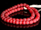 Recycled Raspberry Red Glass Beads from Ghana M00422 African recycled powder glass from Ghana, in a range of red hues. The beads are matte, with a frosted look of sea glass. However, the color depends on monitor settings and the lighting conditions.