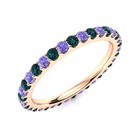 Full Eternity Round Tanzanite & London Blue Topaz 925 Silver Rose Plated Ring