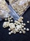 Mixed lot of mostly plastic beads with a few clay ones. In the third picture, there is one or more of every individual bead in the picture. There are several clay "buckeyes" and one clay "mummy". Beads weight in total is just over three ounces. My 4yr old son very enthusiastically held these up and asked me to sell them, so I'm selling them! Thank you. I intended to put this up for auction, but due to an Ebay error I'll have to list it as "Buy it Now", so please feel free to make me an offer!