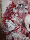 Red & White 18" Ribbon Wreath with Porcelain Ornaments