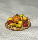 Vintage Dollhouse Artisan Miniature Handmade Woven Wicker Basket W/Fruit 1:12