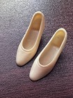 Dress does have 2 light marks on the bottom back. See photo. Shoes are nice but are discolored due to age, they are marked JAPAN.