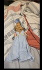 Beautiful soft hair with long ponytail extended, not working. Head faded. Right leg has green stain on back. Wears original dress with the bodice silvered.