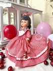 The Vintage Gorham Porcelain Doll from 1981 is a collector's item known as the Musical Jillian Doll from the Love Story series. This 16-inch doll features dark brown curly hair, a light complexion, brown eyes, and comes with a wind-up music box. With removable clothes and being part of the original Gorham Dolls franchise, this vintage doll is perfect for all occasions and is a single unit for sale. The doll is a nostalgic piece from the 1980s, making it a unique and charming addition to any collection or display. she does have a few stains on her dress, and no stand or box included.