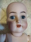 OVERALL VERY NICE WITH MINOR FLAWS. FLASHLIGHT TESTED WITH NO CRACKS IN HEAD. SMALL LINE AND NIP ON BACK OF EAR. LEAD WEIGHTED BLUE SLEEP EYES. A BIT LOOSE BUT WILL STAND. SOME TYPICAL BODY CRACKS AND SMALL TOUCH UPS NEAR READY FOR DISPLAY. BUY ACCORDINGLY