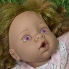 Mold/Number: 011400 (2). Artist: Reva Schick. Outfit: Pink sleeper with lace trim and cat pattern. Type: Baby doll. Outfit shows minor wear from use. Great collectible from a well-known doll artist.