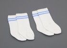 Size: scaled for 18" doll. 2 pair of white socks with double blue stripes on them.