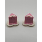Approx .75" high Adorable set of two miniature pink and white cake slices resting on heart-shaped plates, perfect for dollhouse play or miniature displays. These charming pretend food items feature a layered cake design with pink frosting and delicate white floral accents on top. Crafted with a whimsical aesthetic, they add a sweet touch to any collection of doll accessories or kitchen-themed play sets. Brand: Unbranded Product Type: Dollhouse Miniature Cake Gender: Unisex Size: Miniature Color: Pink, White Material: Plastic/Resin Theme: Food, Tea Party Shape: Heart Plate, Triangle Slice Style: Whimsical, Cute Quantity: Set of 2 Feature: Layered Design Accent: White Flowers Occasion: Pretend Play Age Group: Kids