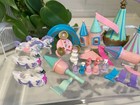 A large lot of dolls and replacement pieces from the Pink Trendmaster Starcastle Carousel Castle play set. All pieces are in great played work condition. Most pieces are excellent, some show play wear. There is one little flag where the base is broken and the key shows some stress to plastic. The bridge shows a little play wear to one side. *just realized the little cake accessory does not go with this set, but will still come with this lot. Please review all photos and ask any questions. Thanks for stopping by!